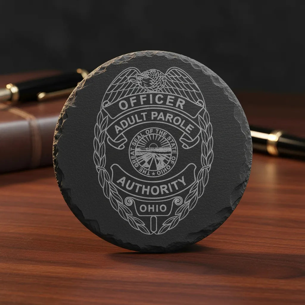Download the Adult Parole Authority Officer Badge SVG. This highly detailed law enforcement vector features a professional badge design honoring parole and probation officers. Perfectly optimized for CNC routers, laser engraving, and vinyl cutting, this clean vector file is ideal for creating custom parole officer retirement plaques, shadow boxes, and unique department tribute gifts.