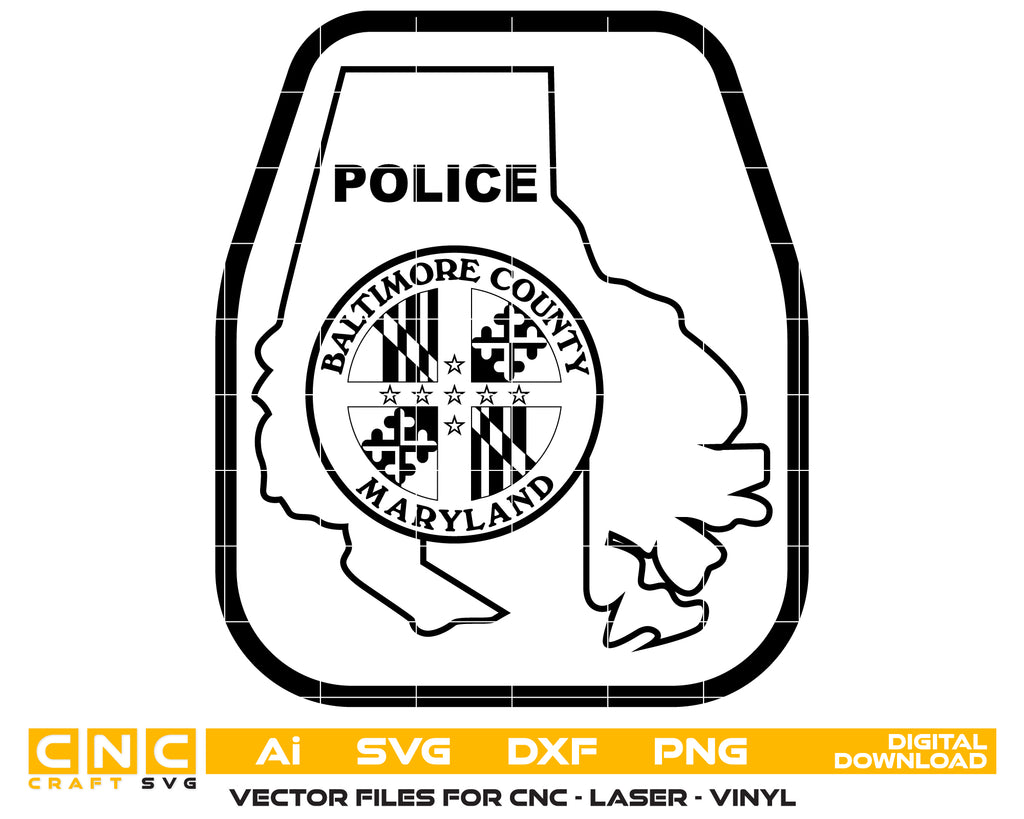 The Baltimore County Police Department Patch SVG is a detailed Maryland law enforcement emblem created in professional vector format. Ideal for CNC cutting, laser engraving, vinyl decals, uniform patches, commemorative plaques, and department signage, this patch ensures crisp, scalable results. Perfect for police memorabilia, department branding, and custom engraving projects, it represents the honor and professionalism of the Baltimore County Police Department. Compatible with metal, wood, fabric, and acrylic surfaces.