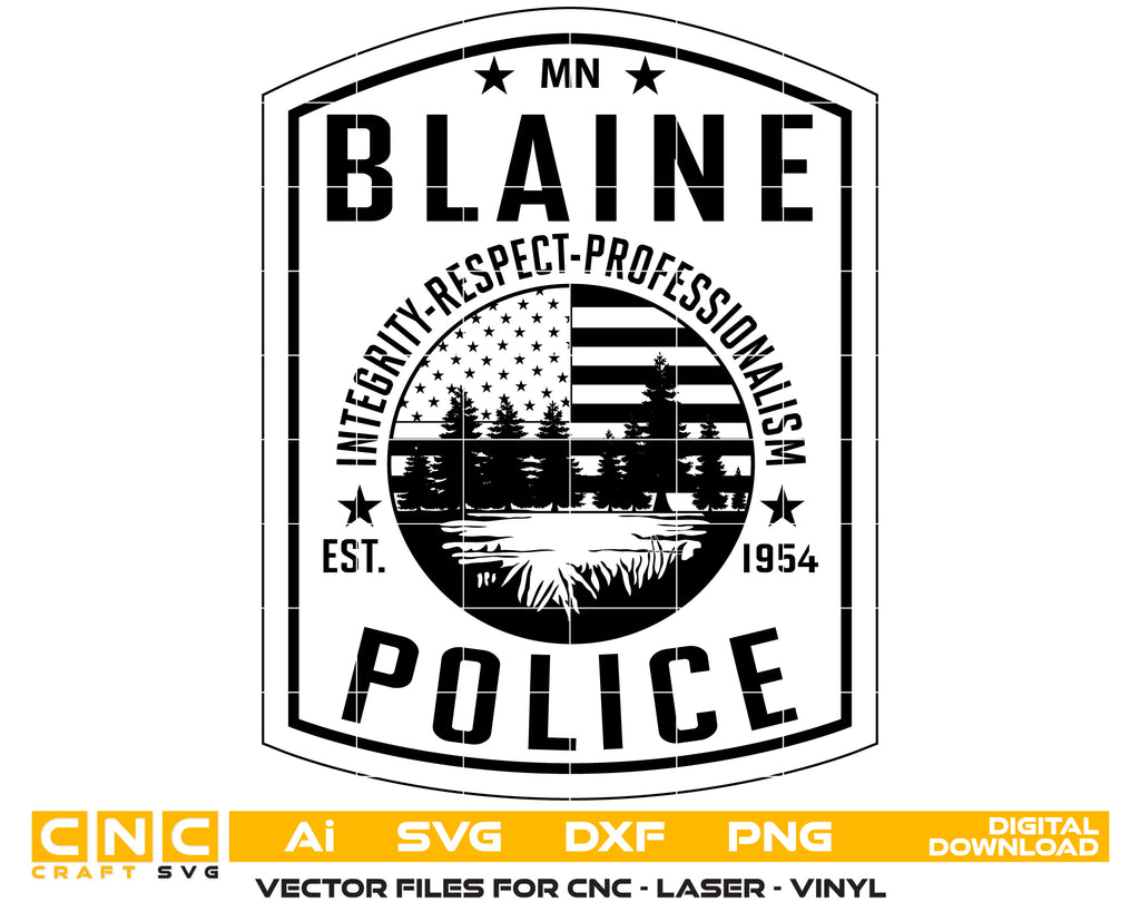 Create professional-quality law enforcement designs with this Blaine Police Officer Badge SVG, a clean and detailed vector badge inspired by the Blaine Police Department. Designed for accuracy and clarity, this badge artwork is ideal for high-quality cutting, engraving, and printing applications.