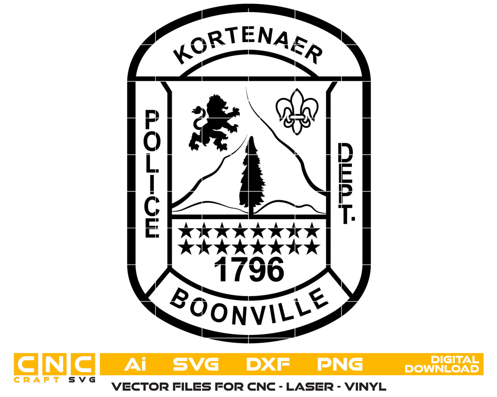 The Boonville Kortenaer Police Department Badge SVG is a precise law enforcement emblem crafted in professional vector format. Ideal for CNC cutting, laser engraving, vinyl decals, uniform patches, commemorative plaques, and department signage, this badge ensures crisp, scalable detailing. Perfect for police memorabilia, department recognition, and custom engraving projects, it represents the pride and dedication of the Boonville Kortenaer Police Department. Compatible with metal, wood, fabric, and acrylic surfaces for versatile use.