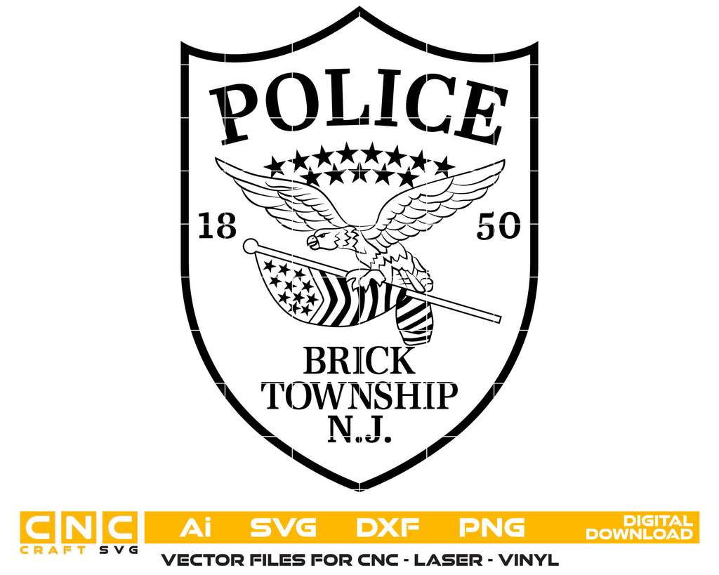 Create professional-quality law enforcement designs with this Brick Township Police Department Logo SVG, a clean and detailed vector design inspired by the Brick Township Police Department in New Jersey. Designed for accuracy and clarity, this logo artwork is ideal for high-quality cutting, engraving, and printing applications.