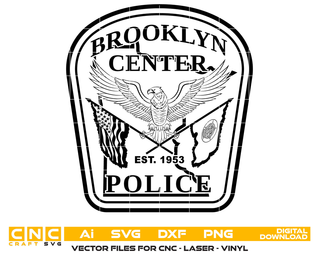 Create professional-quality law enforcement designs with this Brooklyn Center Police Logo SVG, a clean and detailed vector design inspired by the Brooklyn Center Police Department in Minnesota. Designed for accuracy and clarity, this logo artwork is ideal for high-quality cutting, engraving, and printing applications.