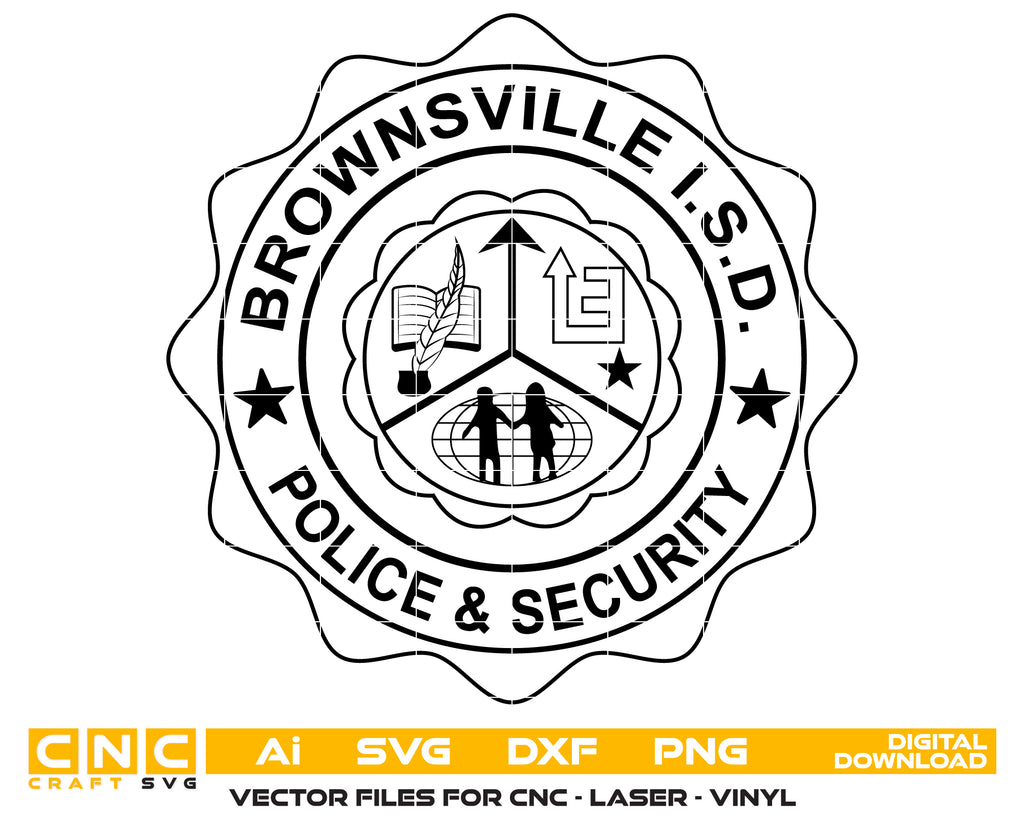 The Brownsville ISD Police & Security Services Emblem SVG is a professional Texas law enforcement vector design representing authority and safety. Perfect for CNC cutting, laser engraving, vinyl decals, uniform patches, department signage, and commemorative plaques, this emblem delivers clean, scalable detailing. Ideal for school security branding, police memorabilia, and custom engraving projects, it reflects the professionalism and dedication of the Brownsville ISD Police & Security Services. Compatible with metal, wood, fabric, and acrylic surfaces.