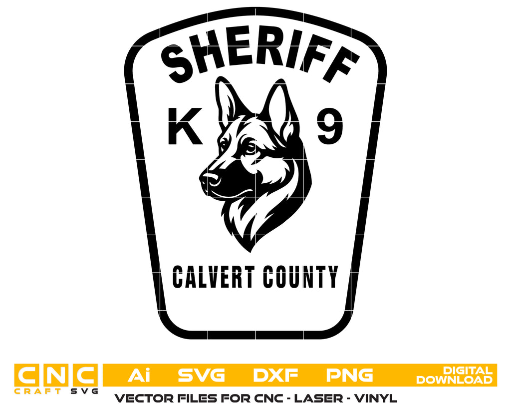 The Calvert County Sheriff K9 Badge SVG is a precision-crafted Maryland law enforcement emblem that honors the partnership between deputies and their K9 unit. Designed in scalable vector format, it’s ideal for CNC cutting, laser engraving, vinyl decals, uniform patches, signage, and commemorative plaques. Featuring sharp vector detailing and professional accuracy, this badge is perfect for collectors, K9 handlers, and engraving projects on metal, wood, or fabric surfaces.