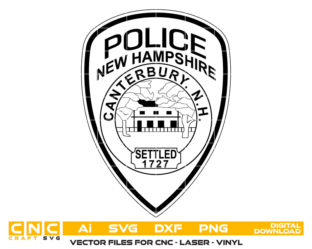 The Canterbury New Hampshire Police Department Patch SVG is a precise law enforcement design offered in professional vector format. Built for makers and engravers, it performs flawlessly with CNC cutting, laser engraving, vinyl decal printing, uniform patches, plaque work, and department signage. Its sharp vector lines ensure professional output on wood, metal, fabric, and acrylic. Perfect for police memorabilia, municipal branding, and custom woodworking projects, this patch delivers both authenticity and quality.