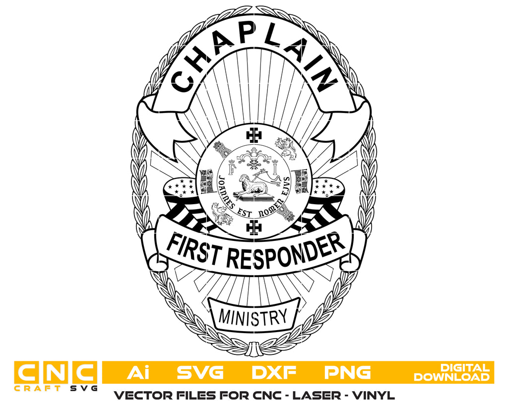 The Chaplain First Responder Badge SVG is a meaningful Puerto Rico law enforcement emblem created in professional vector format. This versatile design is perfect for CNC cutting, laser engraving, vinyl decals, uniform decoration, department plaques, and custom signage. With sharp, scalable vector lines, it produces reliable results on wood, metal, fabric, and acrylic. Ideal for chaplain memorabilia, first responder tributes, collectible plaques, and custom woodworking projects, it combines accuracy with professional detail.