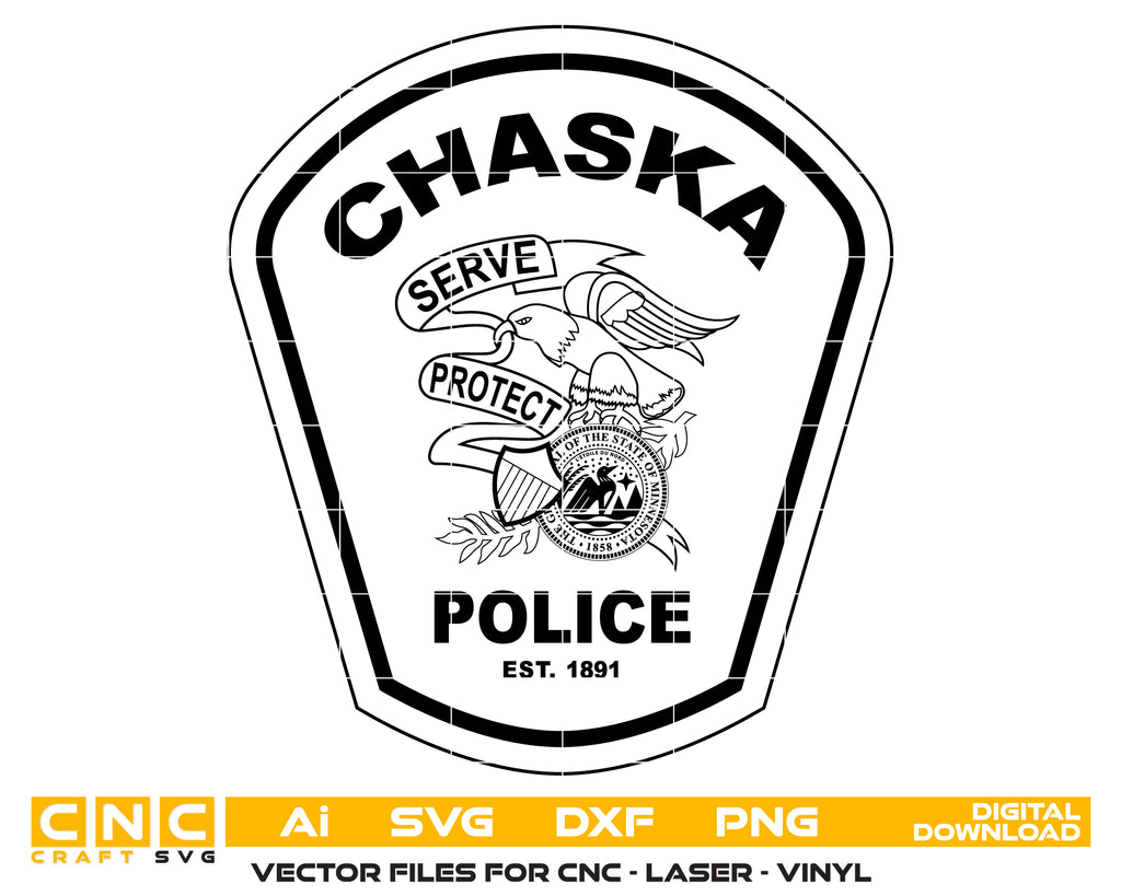 Create professional-quality law enforcement designs with this Chaska Police Patch SVG, a clean and detailed vector patch inspired by the Chaska Police Department in Minnesota. Designed for accuracy and clarity, this patch artwork is ideal for high-quality cutting, engraving, and printing applications.