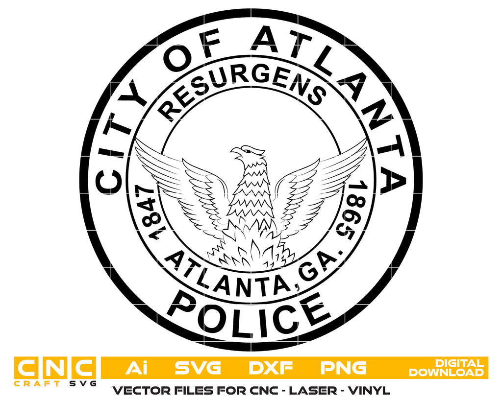 Honor Atlanta’s law enforcement with this high-quality City of Atlanta Police Logo vector. Perfect for Cricut, Silhouette, Glowforge, and laser engraving machines, this detailed digital design is ideal for tributes, decals, shirts, wood signs, and other DIY projects.