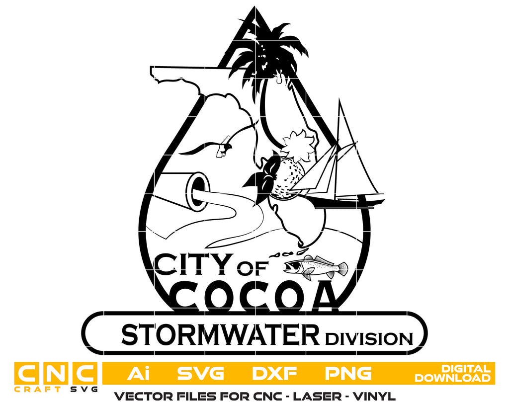 Discover this high-quality Vector SVG file, designed for CNC cutting, laser engraving, and woodworking. Featuring the official seal of the City of Cocoa, Florida, this detailed design is ideal for civic signage, public art, custom décor, and commemorative projects.
