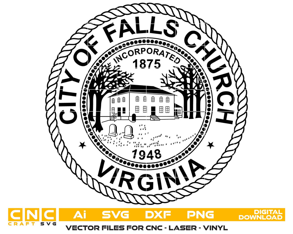 Showcase the official emblem of Falls Church with this high-quality SVG Vector Seal, designed for CNC cutting, laser engraving, and woodworking. Perfect for crafting government signage, civic décor, or historical tributes, this file delivers clean, professional lines for wood, metal, and acrylic surfaces.