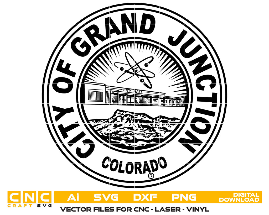 Showcase civic pride with this City of Grand Junction Colorado Seal SVG, a professionally designed digital vector file ideal for CNC cutting, laser engraving, vinyl decals, custom signage, plaques, and official-themed crafts. Delivered in SVG, DXF, PNG, and AI formats, this scalable design is compatible with all popular design software and cutting machines.