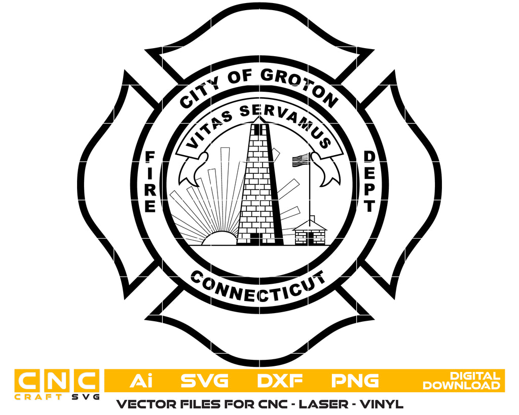 Honor the bravery, dedication, and service of Connecticut firefighters with this City of Groton Fire Department Patch SVG — a crisp, high-quality vector design perfect for crafting, printing, engraving, and commemorative projects.