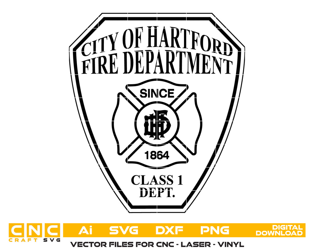 The City of Hartford Fire Department Badge SVG is a professional Connecticut firefighter emblem designed in precise vector format. This badge is ideal for CNC cutting, laser engraving, vinyl decals, apparel printing, commemorative plaques, and department signage. With sharp, scalable vector lines, it produces reliable results on wood, metal, fabric, and acrylic. A perfect choice for firefighter recognition, department memorabilia, and custom woodworking projects, this design ensures both accuracy and authenticity.