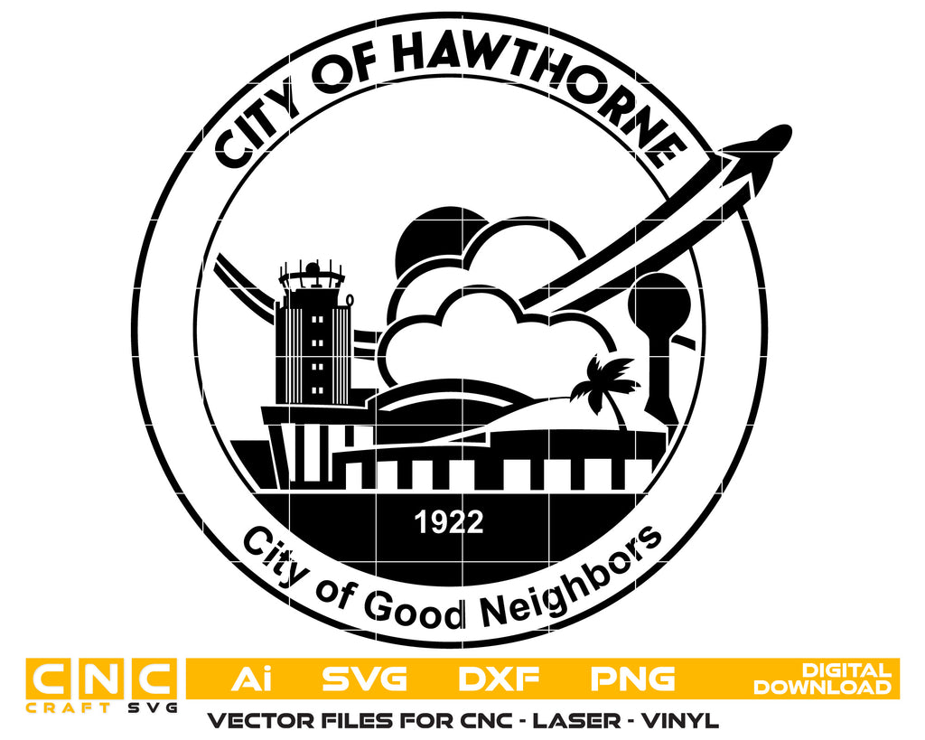 Download this professionally crafted City of Hawthorne, California Logo vector file for your creative projects. Perfect for use with Cricut, Silhouette, Glowforge, and laser engraving machines. Great for customizing shirts, tumblers, plaques, signage, and other city-themed crafts.