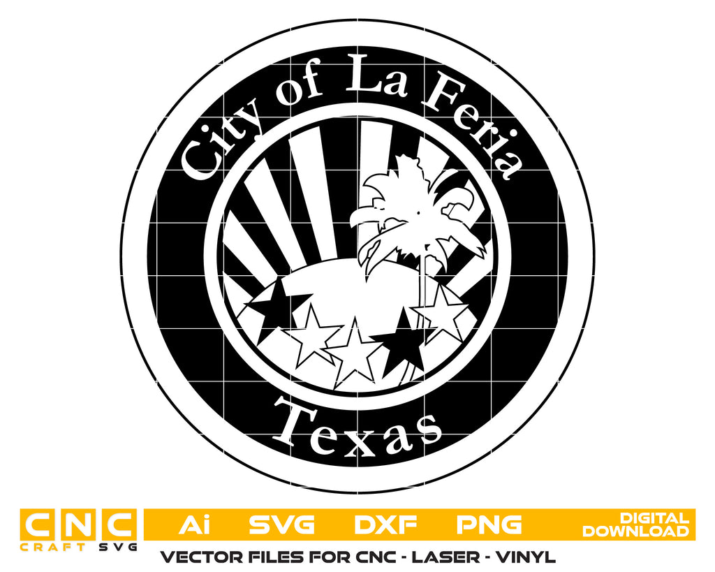 This City of La Feria, Texas Seal vector file is ideal for custom engraving, vinyl crafts, or print projects. Designed for compatibility with Cricut, Silhouette, Glowforge, and CNC machines, it’s perfect for Texas-themed creations like signage, stickers, shirts, or plaques.