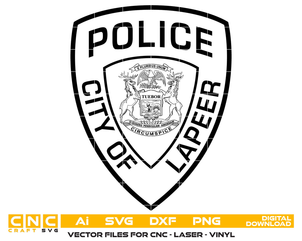 Honor the service and integrity of the City of Lapeer Police Department with this finely detailed patch design, provided in vibrant color and scalable vector formats. Designed for use with CNC cutting, laser engraving, and woodworking, this file is ideal for producing tribute plaques, department signage, or custom law enforcement décor. Its clean structure and sharp detailing ensure accurate results on wood, acrylic, and metal.