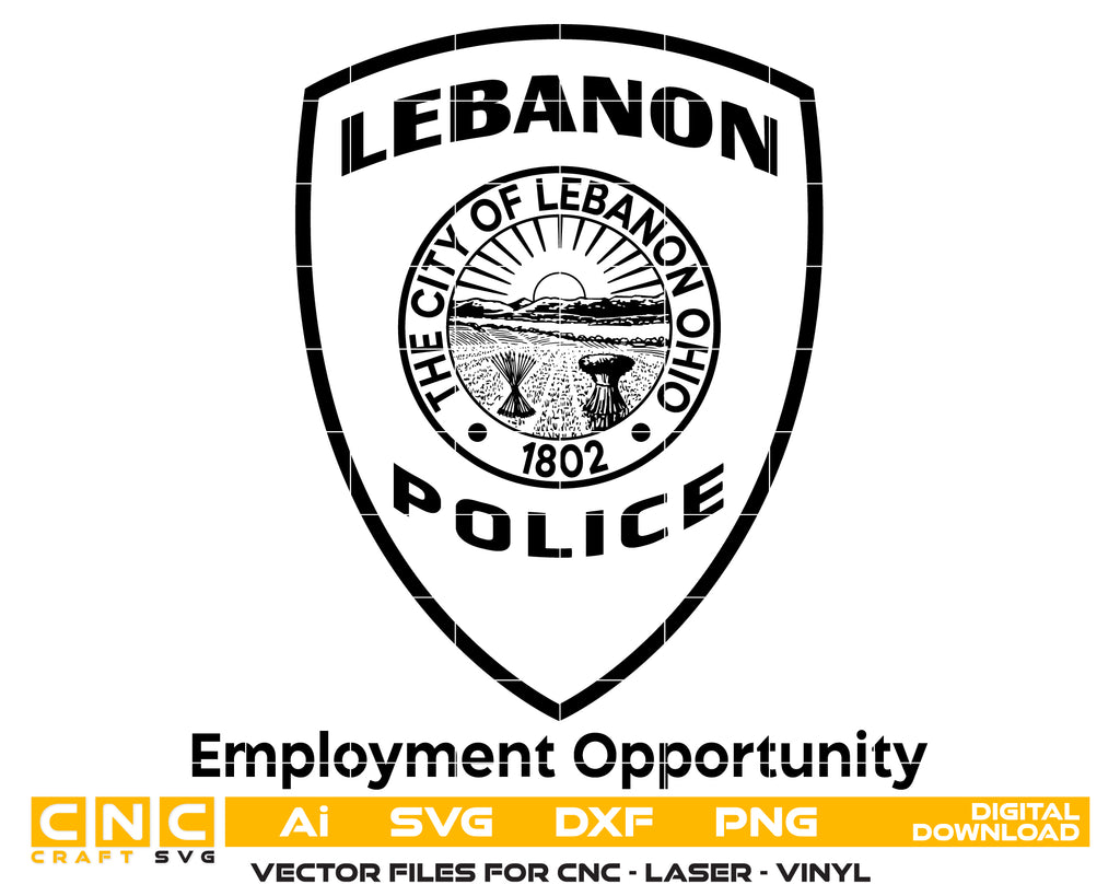 Create professional, law-enforcement–themed designs with this City of Lebanon Police Patch SVG, a detailed vector illustration inspired by the official police patch used by the City of Lebanon, Ohio. Perfect for crafting, printing, engraving, apparel, and commemorative projects.