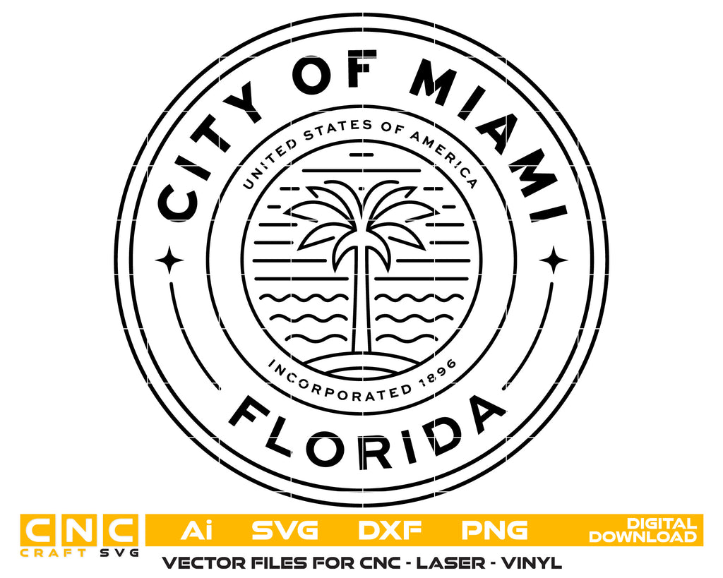 Capture the essence of Miami with this City of Miami Seal SVG, crafted for CNC cutting, laser engraving, and woodworking. Perfect for custom signage, civic projects, or decorative art, ensuring precise cuts on wood, metal, and acrylic materials.