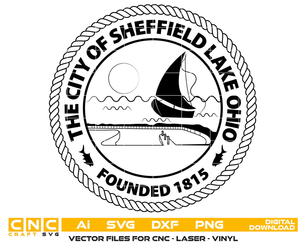 Showcase local pride with the City of Sheffield Lake Logo (Ohio) in a crisp, high-resolution vector format. Ideal for Cricut, Silhouette, Glowforge, and other laser engraving machines, this versatile design is great for custom signs, apparel, tumblers, decals, and community-themed crafts.