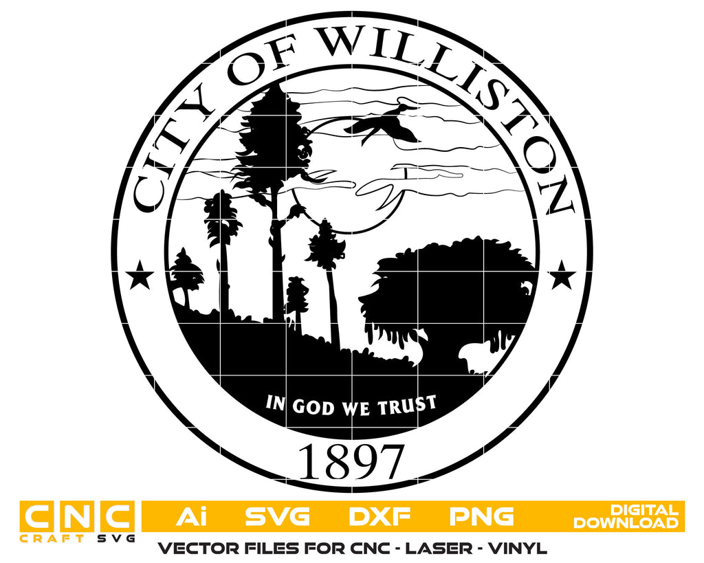 Download the City of Williston, Florida Seal in a high-quality, scalable vector format. Perfect for laser engraving, Cricut, Silhouette, Glowforge, and CNC machines. This official-style seal design is ideal for creating civic signage, custom plaques, decals, apparel, awards, and personalized gifts representing Williston’s identity and pride.