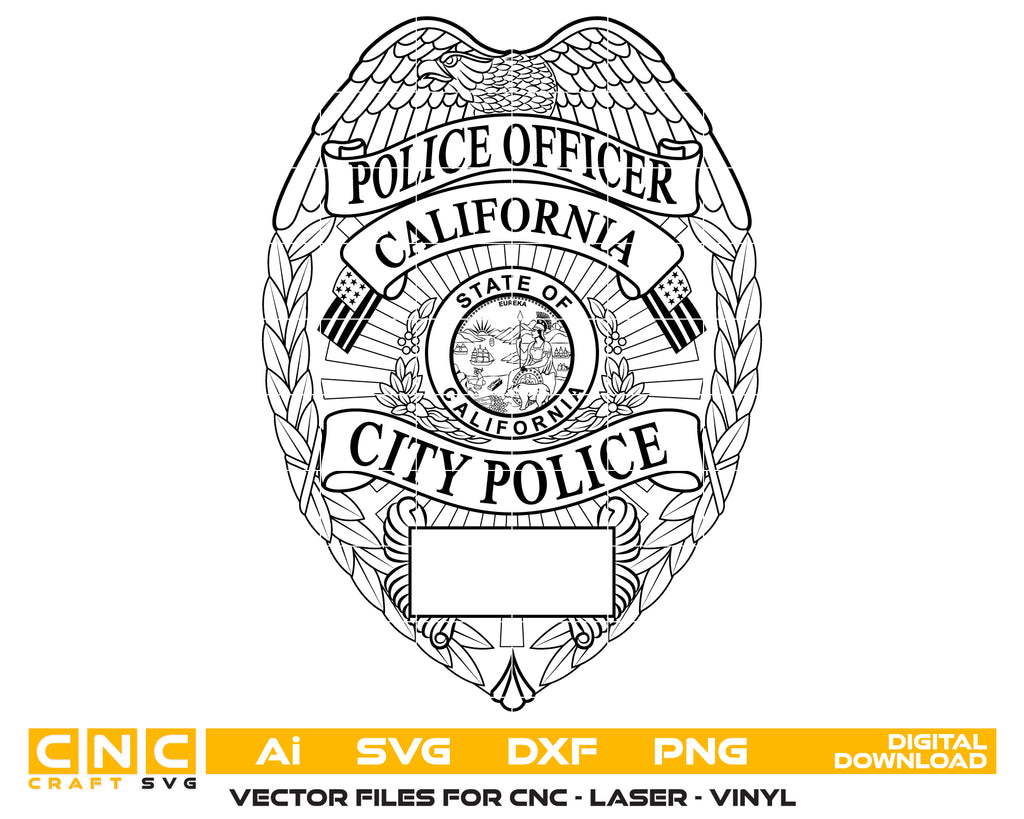The City Police Officer Badge SVG is a professional California law enforcement emblem recreated in precise vector format. This design is ideal for CNC cutting, laser engraving, vinyl decals, uniform decoration, department plaques, and official signage. With sharp, scalable vector lines, it guarantees crisp results on wood, metal, fabric, and acrylic. Perfect for police memorabilia, department recognition, and custom woodworking projects, this badge offers authenticity and professional quality.