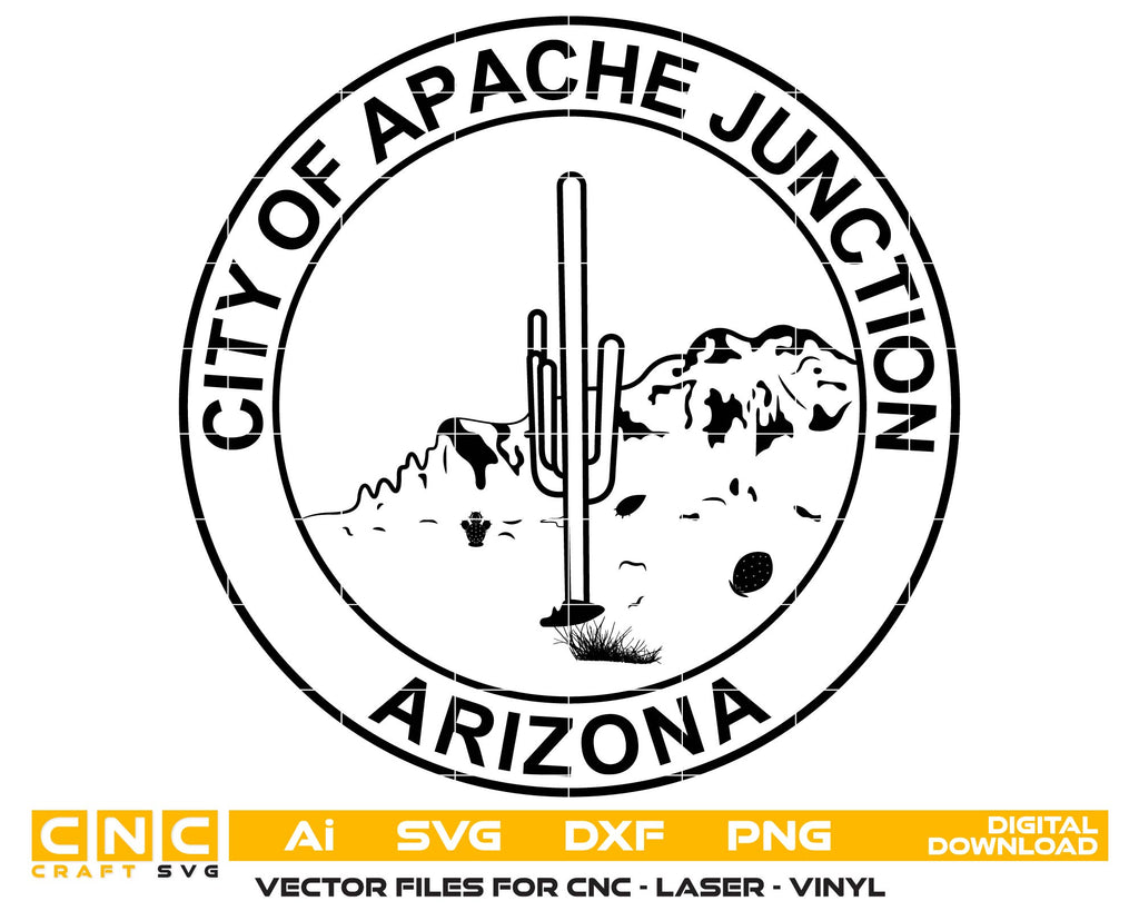 Discover this high-quality Vector SVG file of the City Seal of Apache Junction, Arizona, designed for CNC cutting, laser engraving, and woodworking. Ideal for crafting municipal signage, official décor, or unique artwork. This file guarantees precise, clean cuts on wood, metal, and acrylic surfaces.