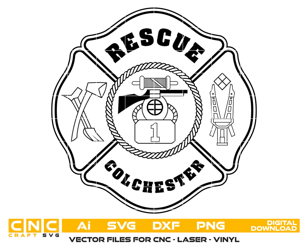 The Colchester Fire Rescue Badge SVG is a high-quality firefighter department emblem created in professional vector format. Perfect for CNC cutting, laser engraving, vinyl decals, uniform decoration, commemorative plaques, and station signage, this design ensures sharp, scalable output. With precise vector lines, it produces reliable results on wood, metal, fabric, and acrylic. An excellent choice for fire rescue memorabilia, official recognition, and custom woodworking projects, it offers both authenticity and professional quality.