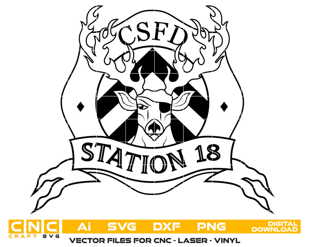 Celebrate the bravery of first responders with this Colorado Springs Station 18 Fire Department SVG Vector. Perfect for laser engraving, CNC cutting, vinyl decals, apparel, and DIY crafts. Delivered in SVG, DXF, PNG, and AI formats, this detailed design is ideal for honoring firefighters and creating personalized projects.