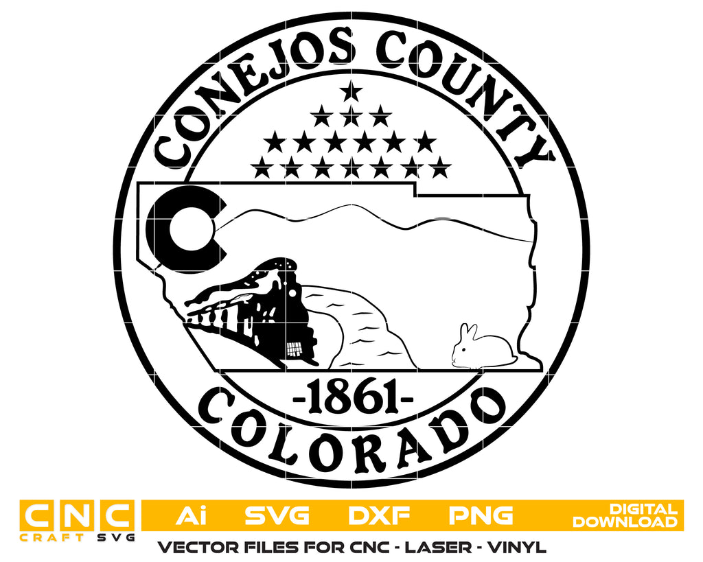 Get creative with this Conejos County Colorado Logo SVG digital file! It's perfect for laser engraving, woodworking, and all printing projects. This versatile design adds a unique touch to your creations. Download now and start crafting!