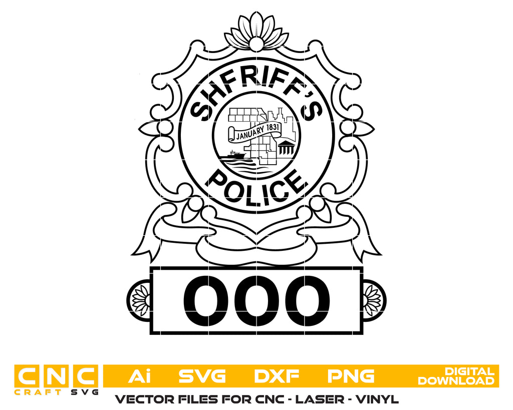 Download a professionally crafted Cook County Sheriff’s Police Badge SVG featuring precise vector detailing, sharp lines, and perfect scalability. Ideal for engraving, CNC cutting, laser etching, decals, apparel printing, signage, and law enforcement collectibles, this vector file delivers clarity and accuracy for any design use.