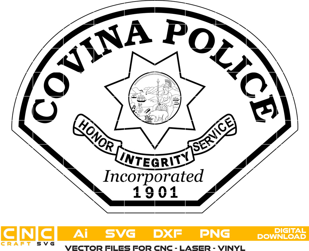 The Covina Police Patch SVG is a detailed California law enforcement emblem representing authority, service, and community protection. Designed in scalable vector format, it’s perfect for CNC cutting, laser engraving, vinyl decals, uniform patches, department signage, and commemorative plaques. Ideal for collectors, engravers, and custom police memorabilia, this patch ensures crisp detailing across metal, wood, fabric, and acrylic surfaces while reflecting the professionalism of the Covina Police Department.