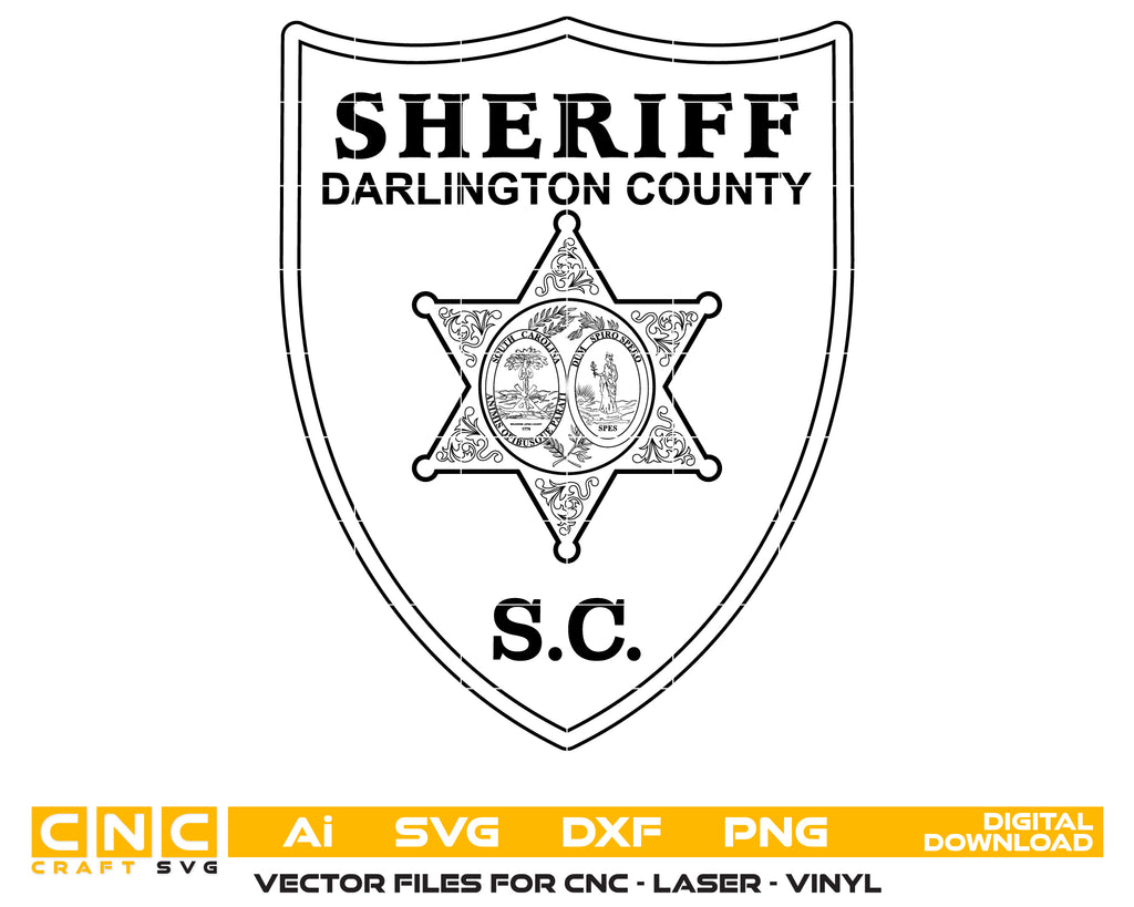 Add professional detail and official presence to your law enforcement projects with the Darlington County Sheriff Logo SVG. This layered vector design is ideal for laser engraving, CNC cutting, vinyl decals, plaques, uniforms, and signage. Designed to retain sharp clarity and precise detailing at any size, it works seamlessly on metal, wood, acrylic, leather, and fabric. Perfect for department branding, commemorative displays, and collectible logos representing the Darlington County Sheriff’s Office.