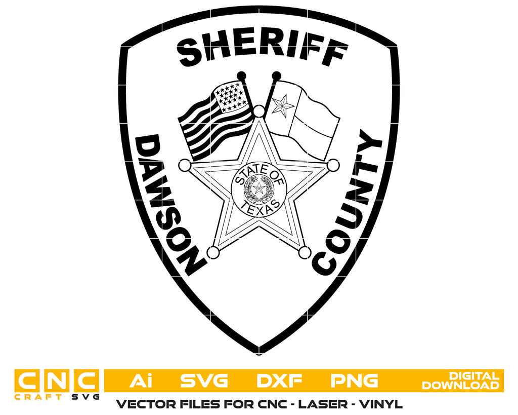 The Dawson County Sheriff Badge SVG is a precision-designed Georgia law enforcement emblem symbolizing authority, service, and community protection. Created in scalable vector format, it’s ideal for CNC cutting, laser engraving, vinyl decals, uniform badges, department signage, and commemorative plaques. Perfect for collectors, engravers, and custom sheriff memorabilia, this badge ensures crisp detailing on metal, wood, fabric, and acrylic surfaces while honoring the Dawson County Sheriff’s Office.