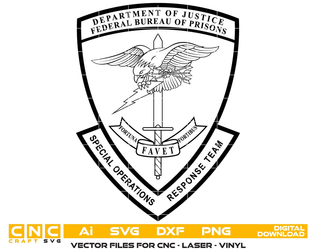 Display authority with this DOJ Federal Bureau of Prisons Badge SVG. Expertly designed in scalable vector format, this official United States corrections emblem is ideal for CNC cutting, laser engraving, vinyl decals, apparel printing, plaques, signage, and woodworking projects. With clean vector lines, it delivers sharp, professional-quality results on wood, acrylic, fabric, or metal. Perfect for federal officer plaques, institution signage, collectible memorabilia, and custom décor.