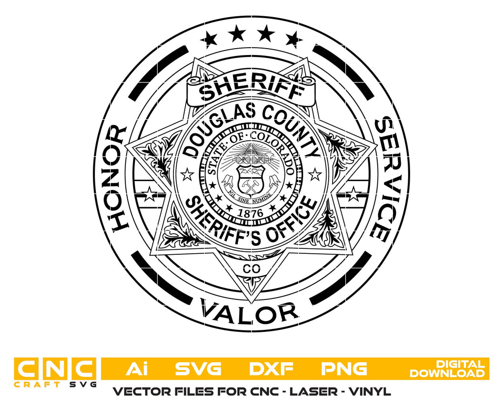Download a professionally redrawn Douglas County Sheriff’s Office Badge SVG featuring crisp detailing, smooth vector lines, and perfect scalability. This premium-quality badge design is ideal for Cricut, Silhouette, CNC routers, laser engraving, vinyl decals, plaques, signage, apparel printing, and digital/print media.