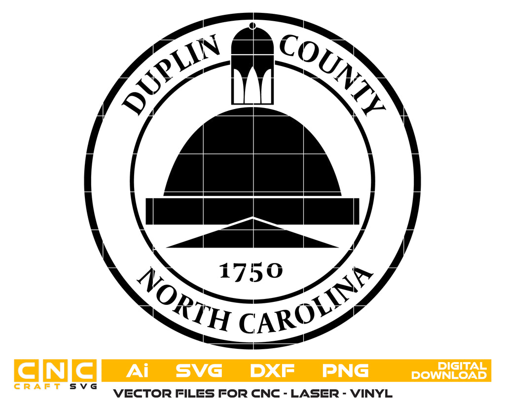 The Duplin County Seal SVG is a versatile and professional vector file, perfect for digital and physical design applications. Ideal for creating custom signage, apparel, and official projects. This detailed and precise design suits woodworking, engraving, and other creative uses.