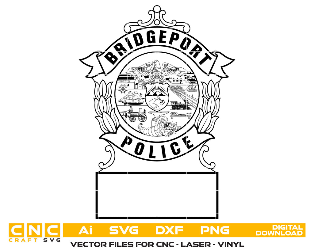 Honor the legacy, service, and professionalism of Connecticut law enforcement with this Early Bridgeport Police Hat Badge SVG — a crisp, high-quality vector design perfect for crafting, printing, engraving, and commemorative projects.