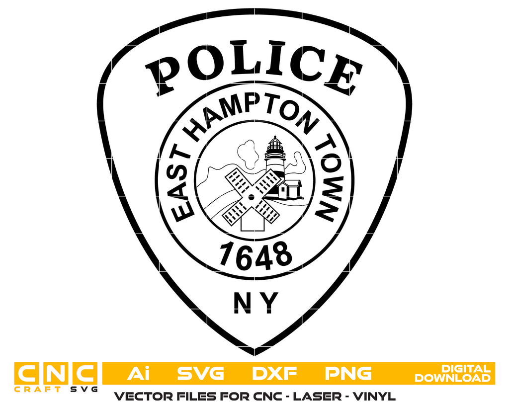 The East Hampton Town Police Department Patch SVG is a detailed New York law enforcement emblem recreated in high-quality vector format. This patch is ideal for CNC cutting, laser engraving, vinyl decals, uniform patches, commemorative plaques, and municipal signage. With sharp vector lines, it delivers crisp, scalable results on wood, metal, fabric, and acrylic. A perfect choice for police memorabilia, department recognition, and custom woodworking projects, it ensures authenticity and precision for makers and collectors.