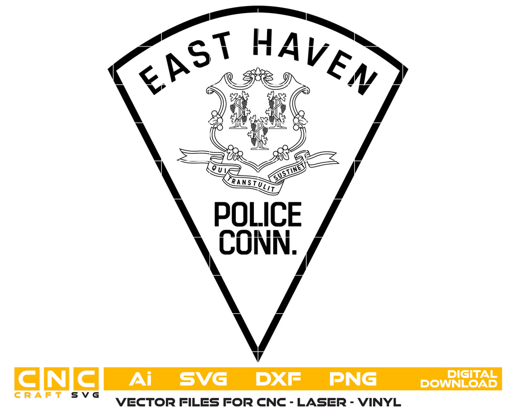 The East Haven Police Patch SVG is a detailed Connecticut law enforcement emblem designed in professional vector format. Perfect for CNC cutting, laser engraving, vinyl decals, uniform patches, department plaques, and municipal signage, this file ensures crisp, scalable results. With sharp vector lines, it produces professional-quality detail on wood, metal, fabric, and acrylic. A great option for police memorabilia, official recognition, and custom woodworking projects, it offers both precision and authenticity.