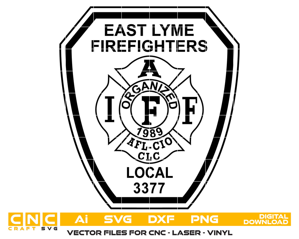 Celebrate the dedication, service, and courage of Connecticut firefighters with this East Lyme Firefighters Patch SVG — a crisp, high-quality vector design perfect for crafting, printing, engraving, and commemorative projects.