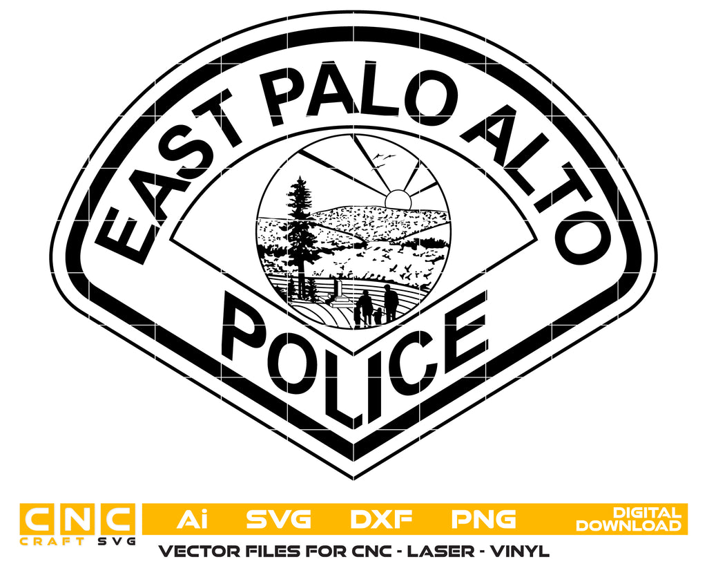 The East Palo Alto Police Patch SVG is a detailed California law enforcement emblem representing community protection, authority, and service. Designed in scalable vector format, it’s ideal for CNC cutting, laser engraving, vinyl decals, uniform embroidery, signage, and commemorative plaques. Perfect for collectors, police departments, and custom memorabilia projects, this patch delivers crisp detailing on metal, wood, fabric, and acrylic surfaces while honoring the East Palo Alto Police Department.