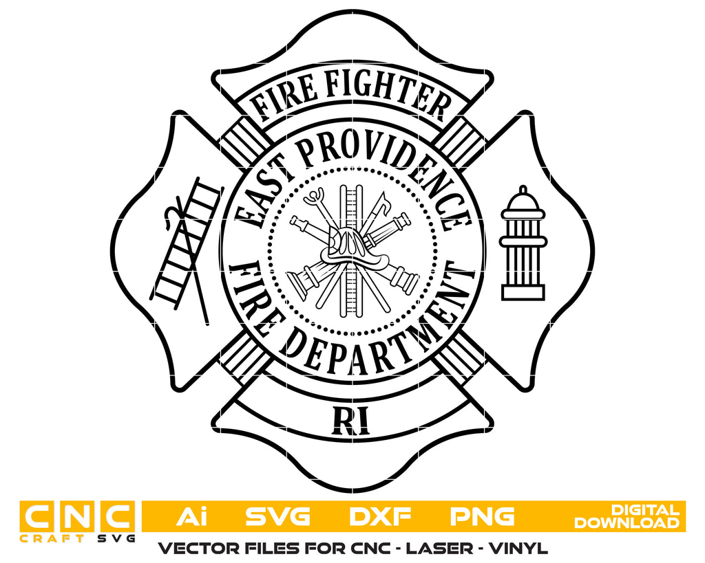 The East Providence Fire Department Badge SVG is a high-quality Rhode Island firefighter emblem designed with precision and pride. Ideal for CNC cutting, laser engraving, vinyl decals, uniform applications, department signage, and commemorative plaques, this vector badge showcases the bravery and professionalism of the East Providence Fire Department. Crafted with sharp lines and scalable detailing, it’s perfect for collectors, firefighter gifts, and custom engraving projects on metal, wood, or fabric.