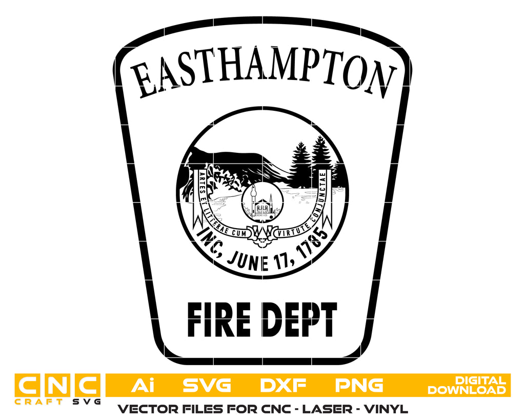 The Easthampton Fire Department Patch SVG is a professional Massachusetts firefighter emblem crafted in detailed vector format. Perfect for CNC cutting, laser engraving, vinyl decals, uniform patches, commemorative plaques, and station signage, this design ensures crisp, scalable results. With precise vector lines, it performs reliably on wood, metal, fabric, and acrylic. A great option for fire rescue memorabilia, department branding, and custom woodworking projects, this patch provides both authenticity and professional quality.