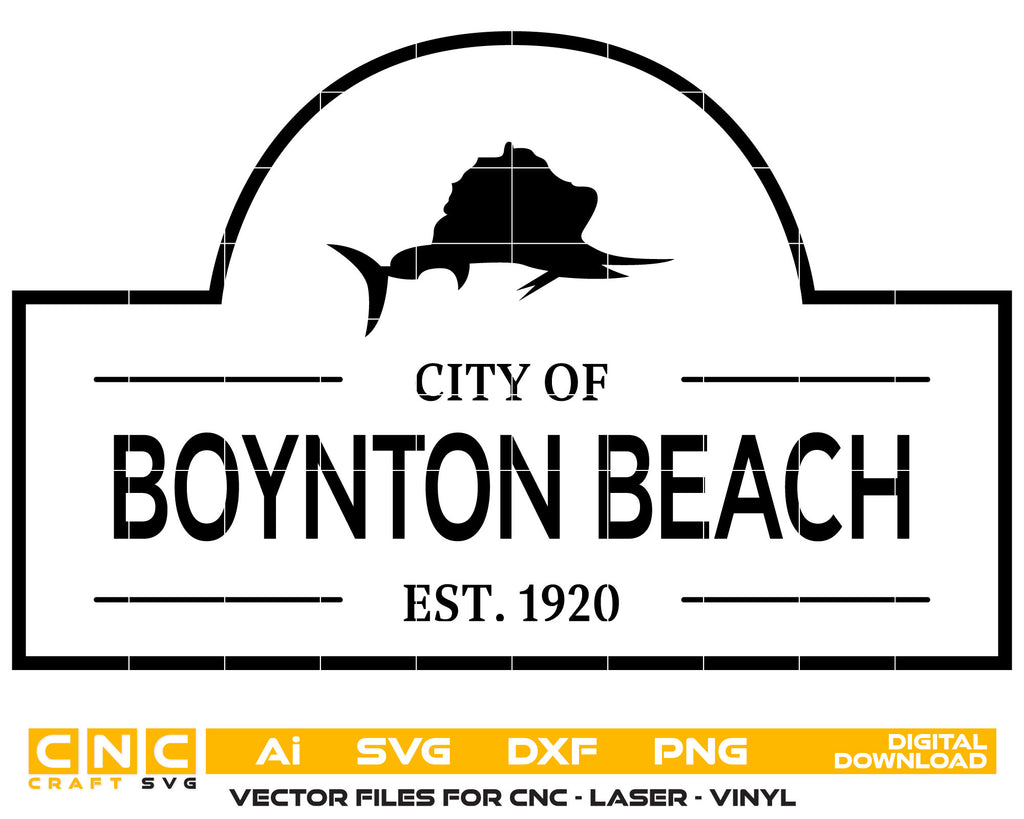 Celebrate Boynton Beach Florida with this high-quality Emblem Vector SVG file, perfect for CNC cutting, laser engraving, and woodworking. Ideal for crafting custom signs, official décor, and unique artwork on wood, metal, and acrylic.