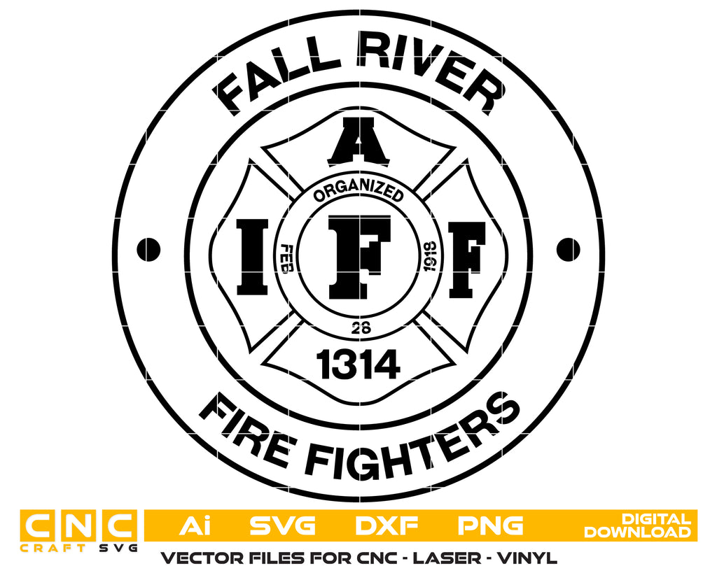 Honor the strength, dedication, and courage of Massachusetts firefighters with this Fall River Firefighters Logo SVG — a clean, high-quality vector design perfect for crafting, printing, engraving, displays, and commemorative projects.