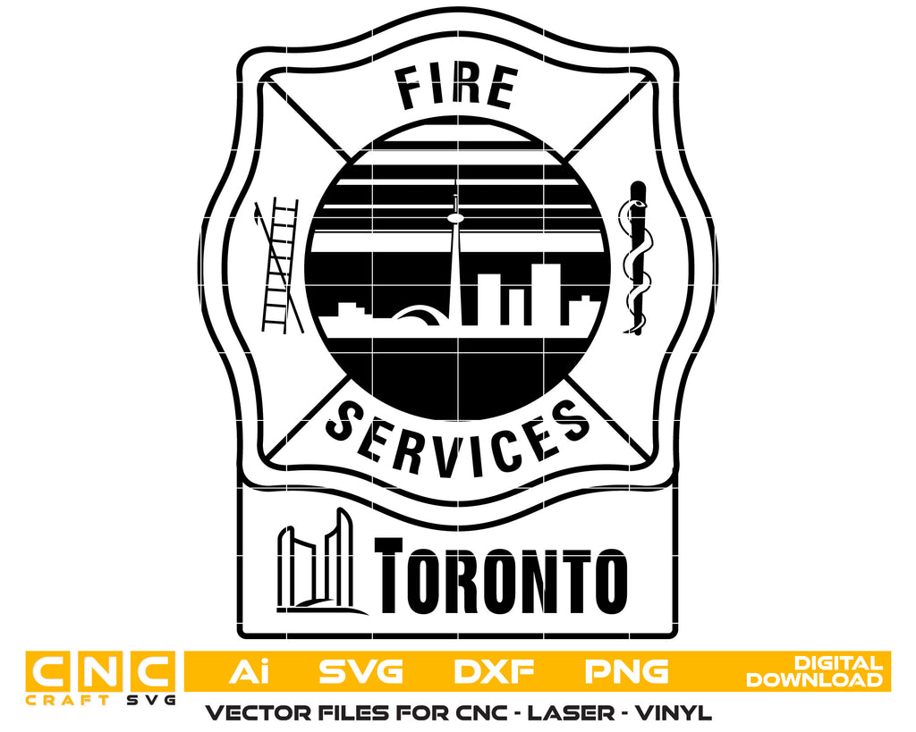 Download the Fire Service Toronto Logo in a clean, high-resolution vector format. Perfect for laser engraving, Cricut, Silhouette, Glowforge, and CNC machines. This professional design is ideal for firefighter tribute signs, custom decals, shirts, mugs, wall art, and personalized gifts honoring Canadian fire service personnel.