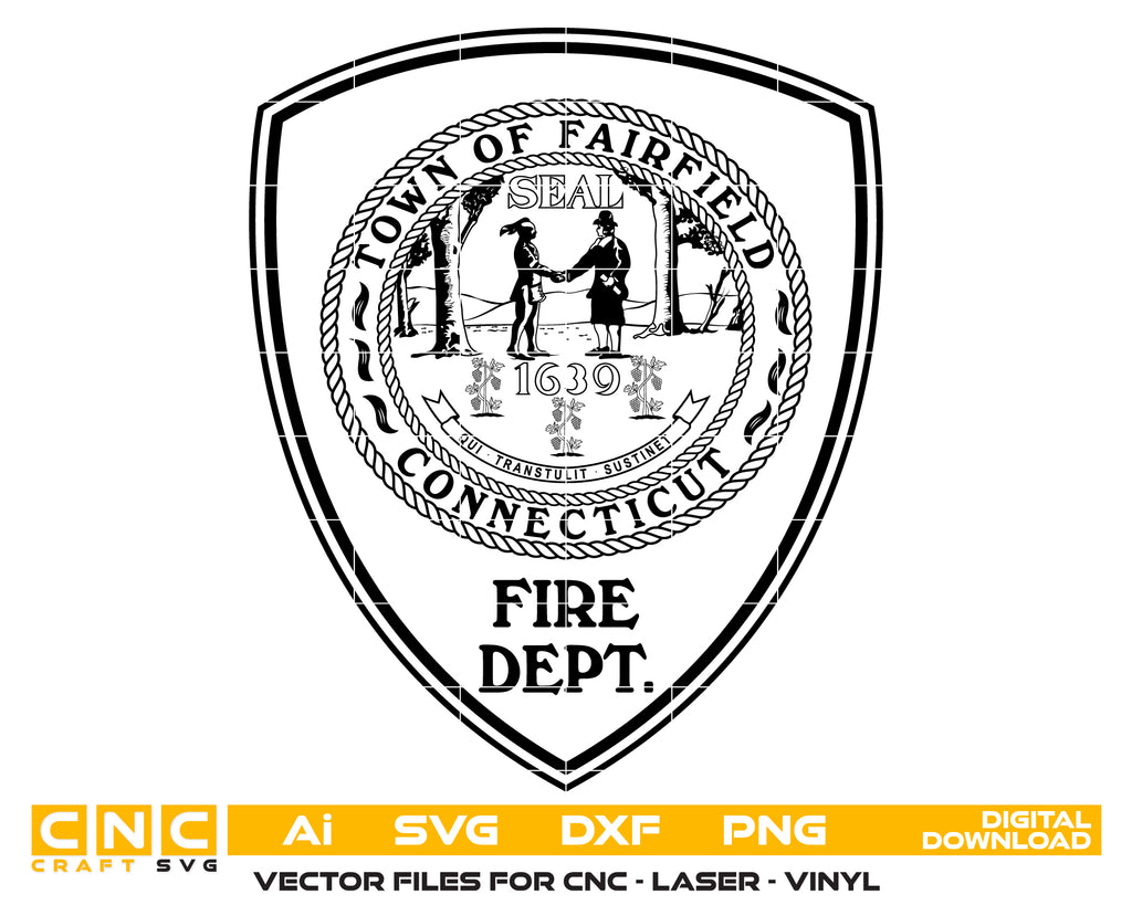 Honor the bravery, dedication, and service of Connecticut firefighters with this Firfield Fire Department Patch SVG — a crisp, high-quality vector design perfect for crafting, printing, engraving, displays, and commemorative projects.