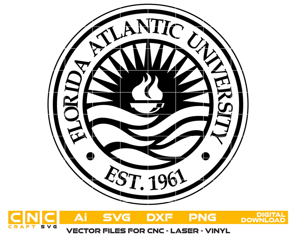 This high-quality digital vector of the Florida Atlantic University Seal is perfect for alumni gifts, graduation crafts, educational displays, and more. Designed for compatibility with Cricut, Silhouette, Glowforge, and laser engraving machines. Great for apparel, decals, plaques, and keepsakes.