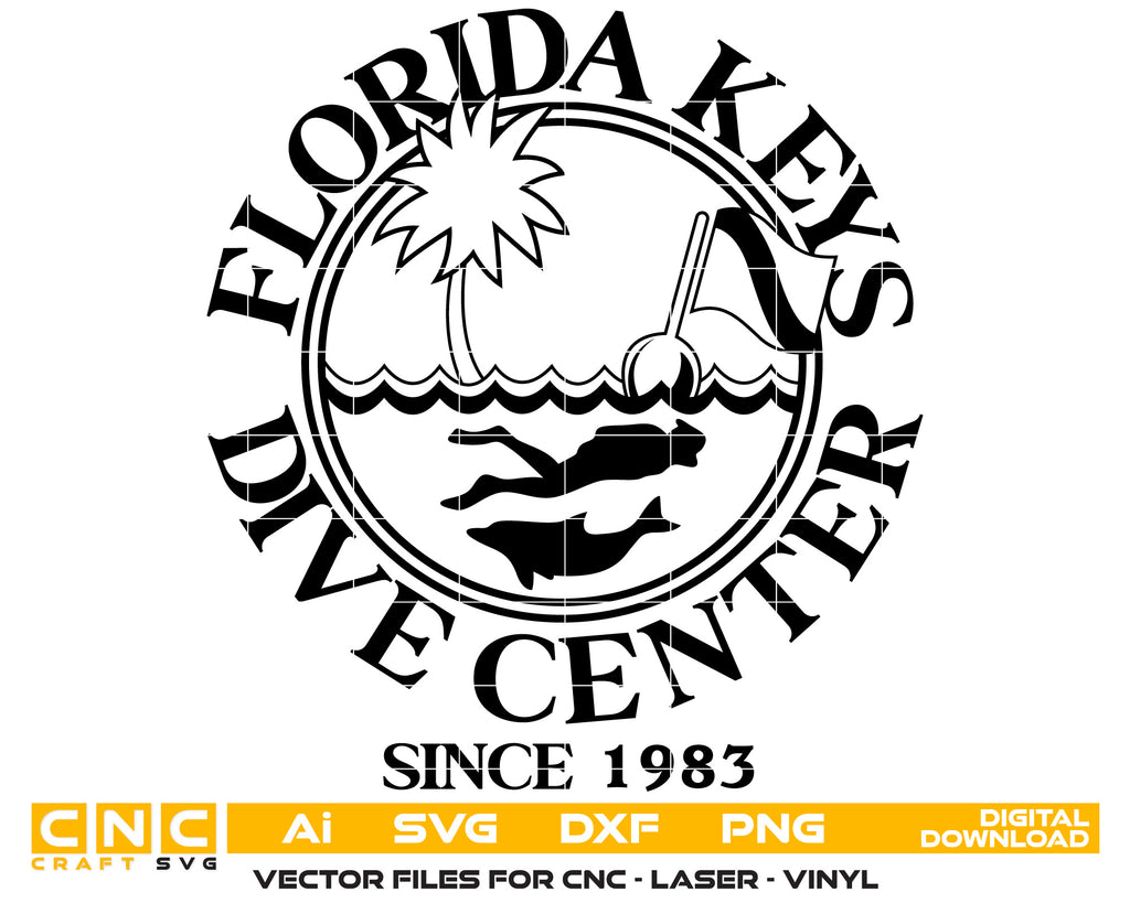 Capture the spirit of coastal adventure with this detailed Florida Keys Dive Center Logo vector file. Perfect for dive-themed crafts, custom apparel, signage, decals, and more, this design works seamlessly with Cricut, Silhouette, Glowforge, and laser engraving machines. A great addition to marine, scuba, and coastal decor projects.