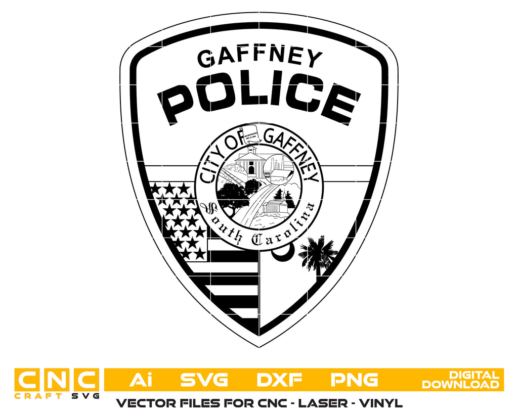 Create professional-quality law enforcement designs with this Gaffney Police Department Patch SVG, a clean and detailed vector patch inspired by the Gaffney Police Department in South Carolina. Designed for accuracy and clarity, this patch artwork is ideal for high-quality cutting, engraving, and printing applications. Perfect for plaques, decals, uniforms, signage, and collectible police patches.